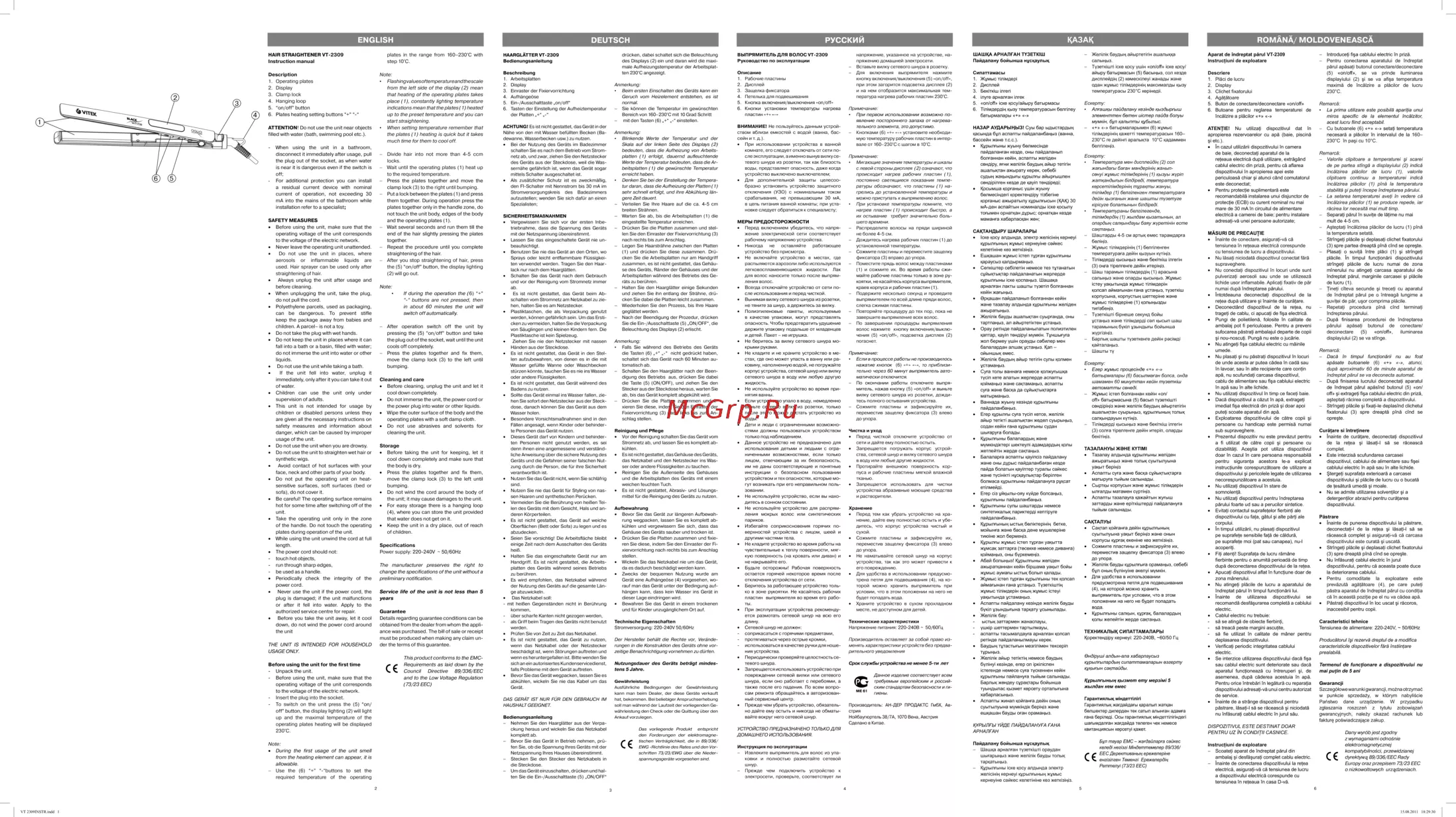 - Aparat de îndreptat părul vt 2309 instrucţiuni de exploatare p.1