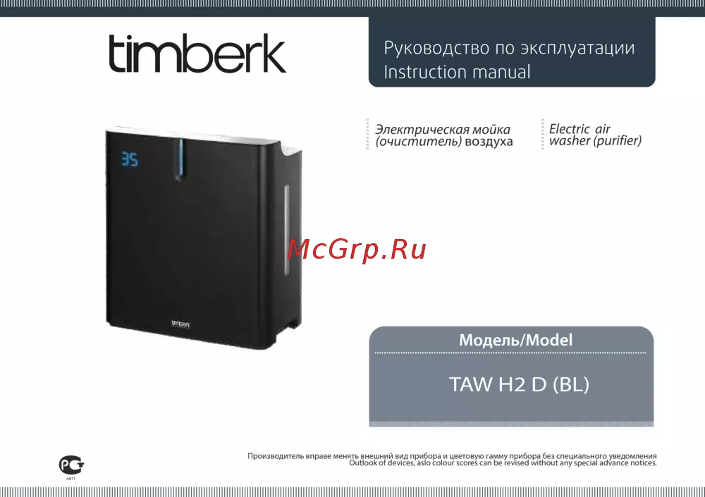 Timberk TAW H2 D (BL) Инструкция по эксплуатации онлайн