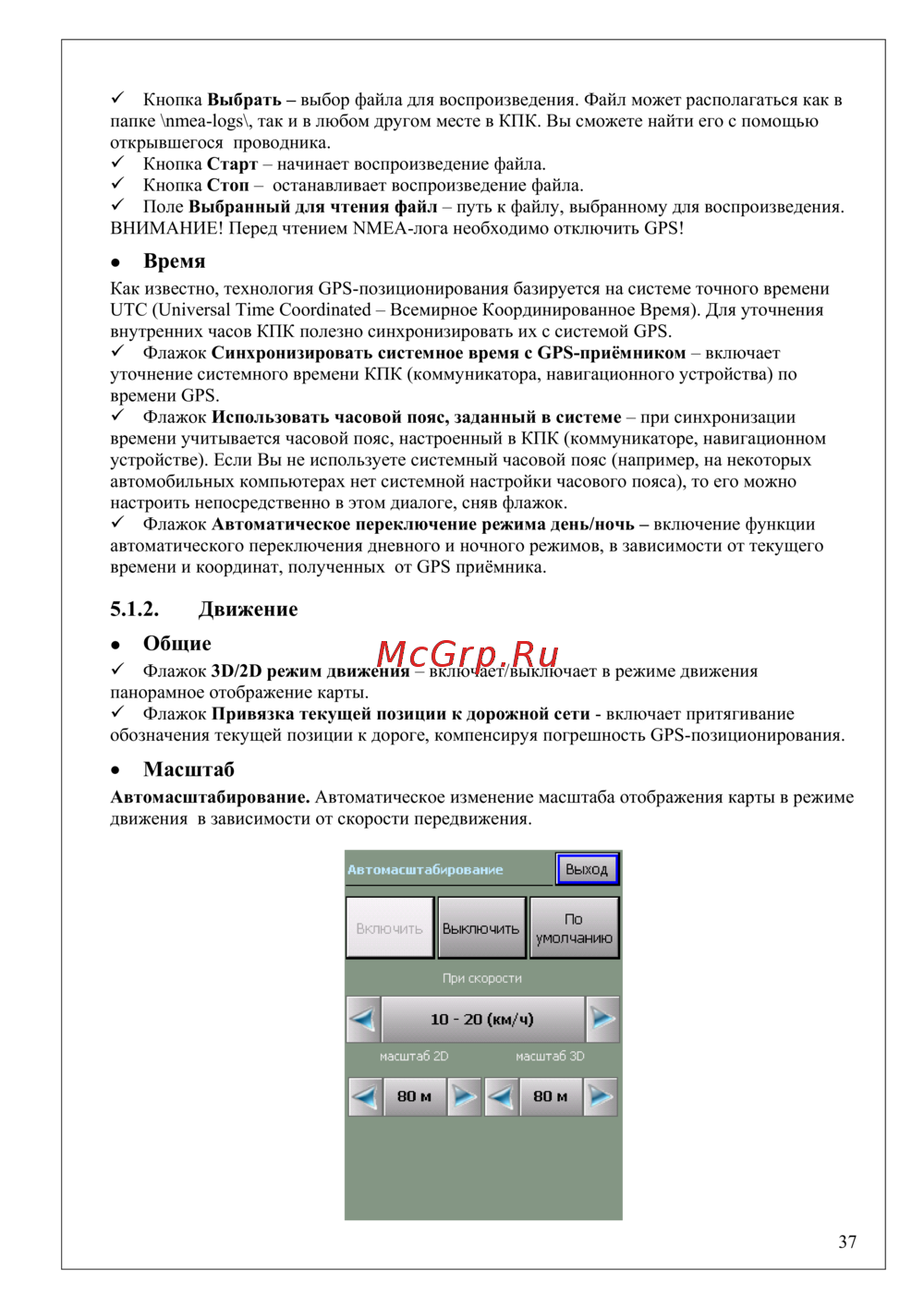 времени учитывается часовой пояс, настроенный в КПК (коммуникаторе, навигационном