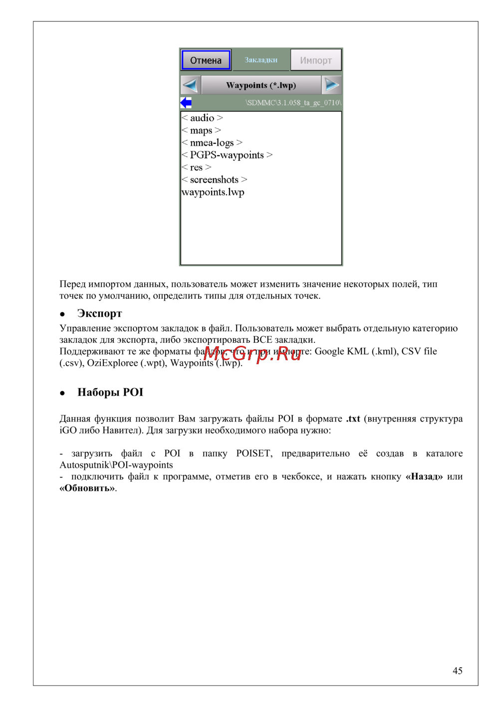 Данная функция позволит Вам загружать файлы POI в формате .txt (внутренняя структура