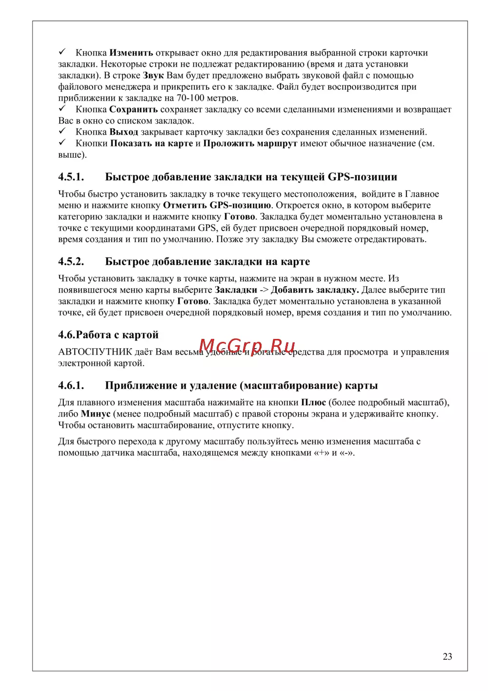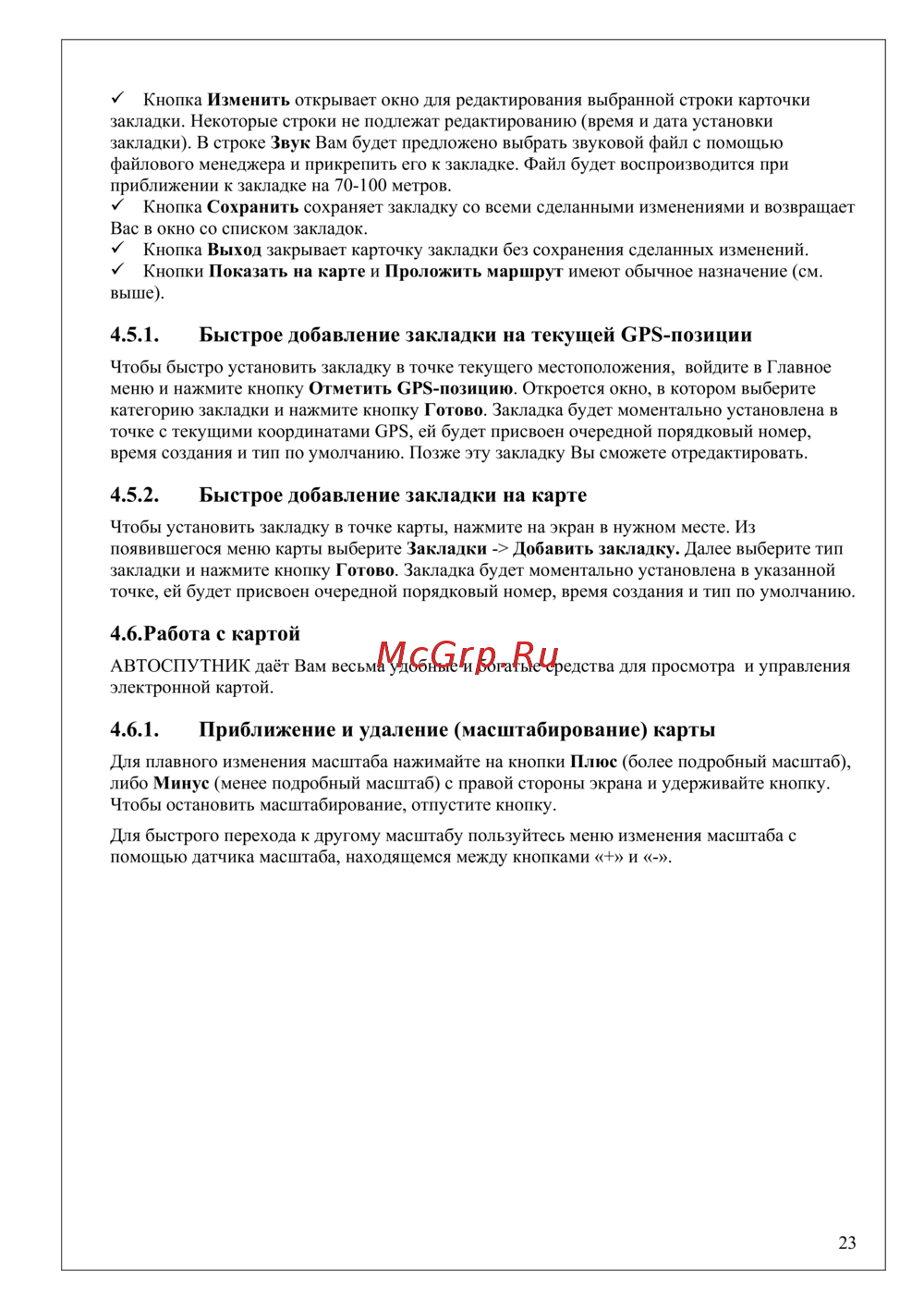 - Быстрое добавление закладки на текущей gps позиции p.23