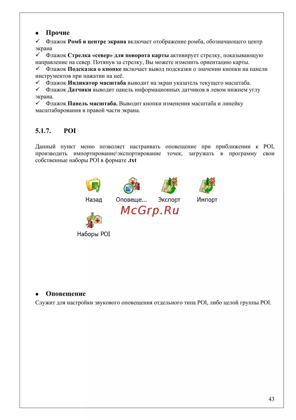 Данный пункт меню позволяет настраивать оповещение при приближении к POI,