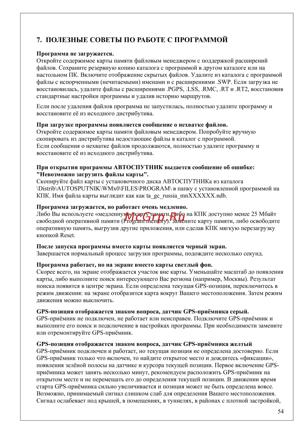 - Рекомендации по работе с gps приёмником p.61