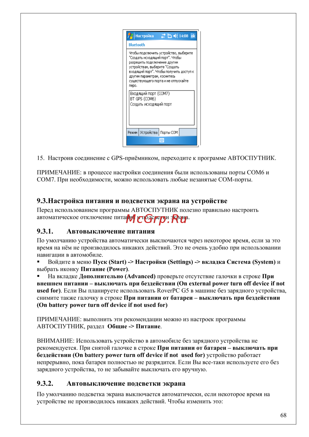 - Настройка bluetooth соединения с gps приёмниками p.62