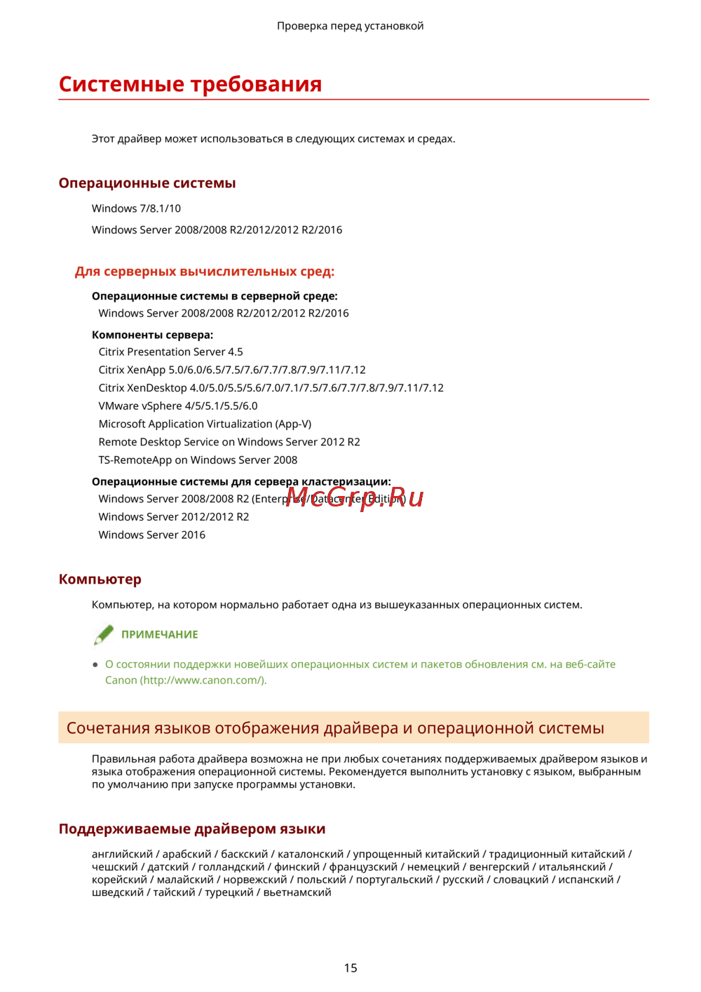 Canon imagerunner advance c3320 [18/91] Сочетания языков отображения драйвера и операционной системы