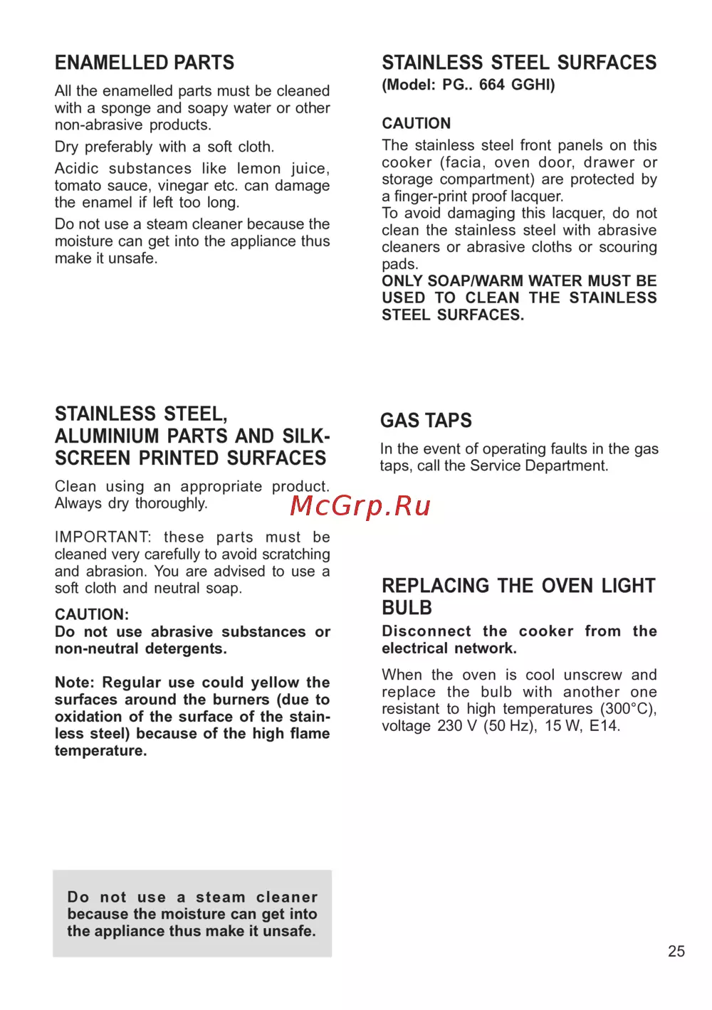 Delonghi TGX 664 GHI — уход за эмалированными и нержавеющими частями кухонных приборов [25/92]