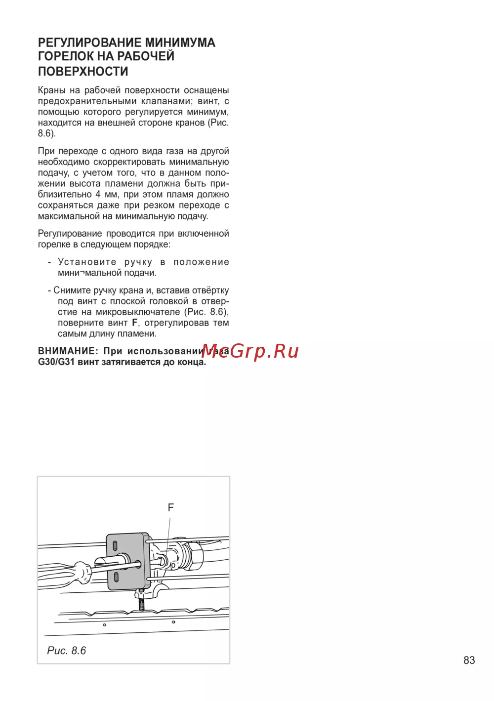 - Регулирование минимума горелок на рабочей поверхности p.83