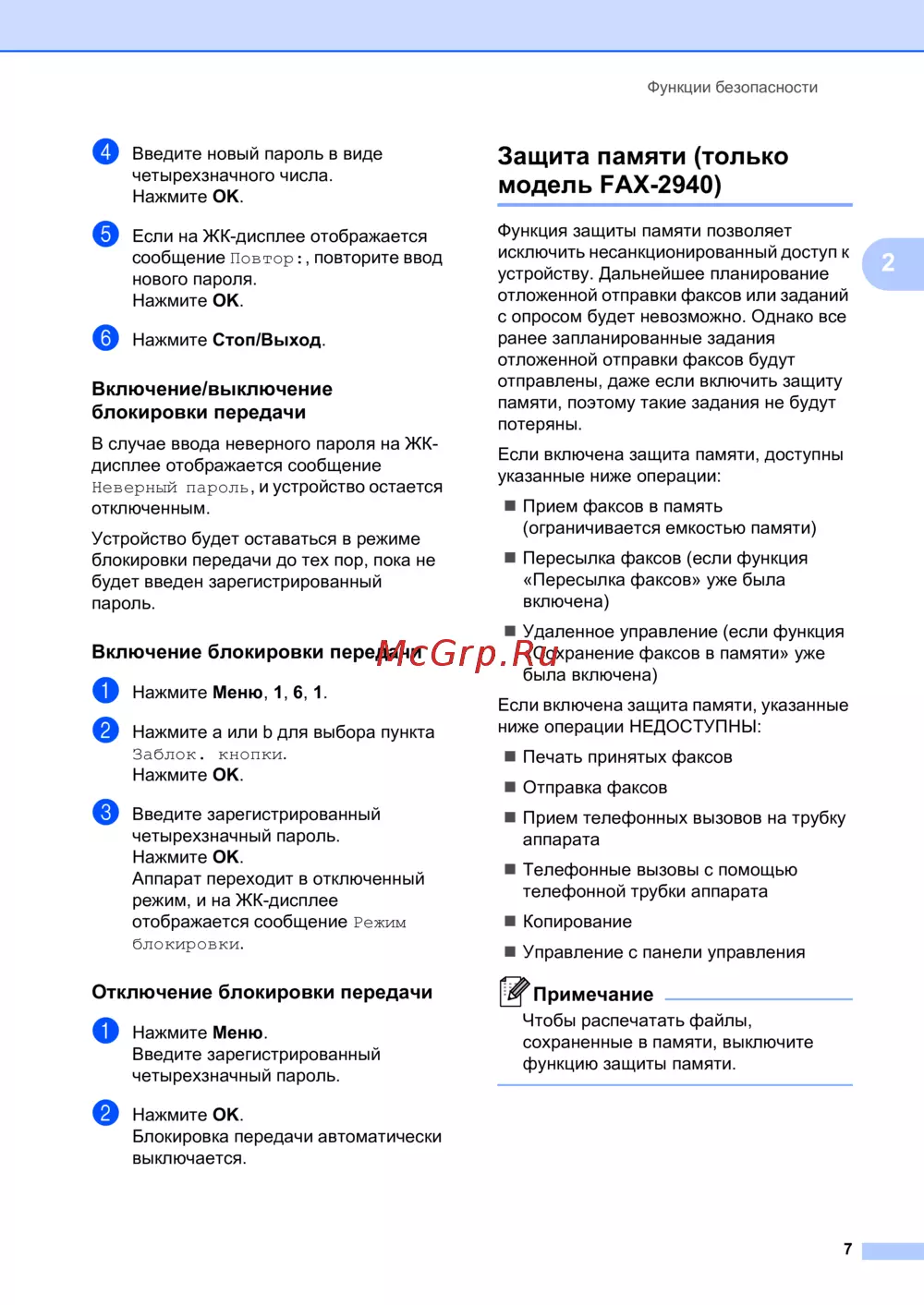 ![Brother FAX-2940R [13/59] Включение выключение блокировки передачи](/views2/1405998/page13/bgd.png)