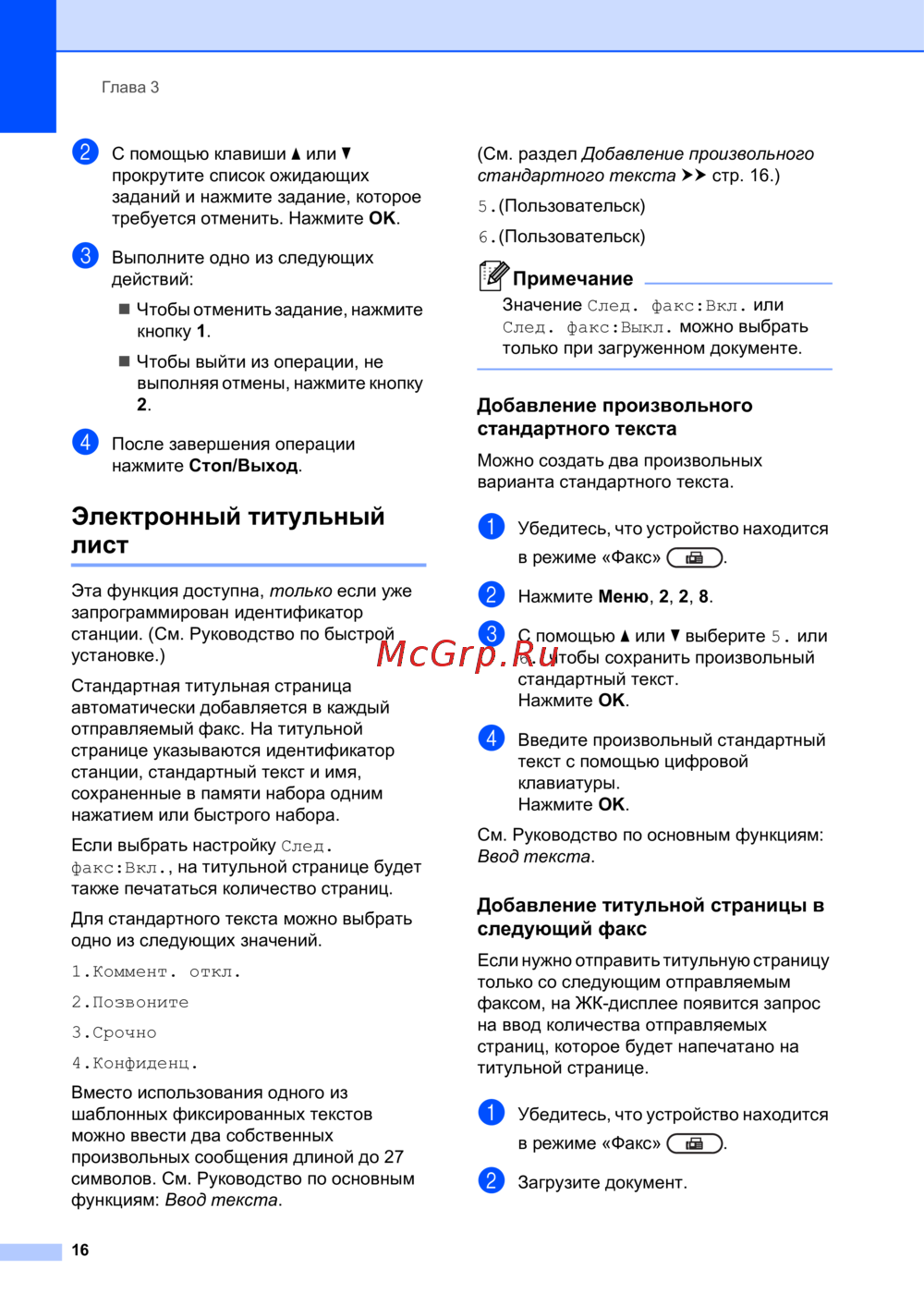 Brother FAX-2940R — как отменить задание и настроить титульную страницу факса [22/59]