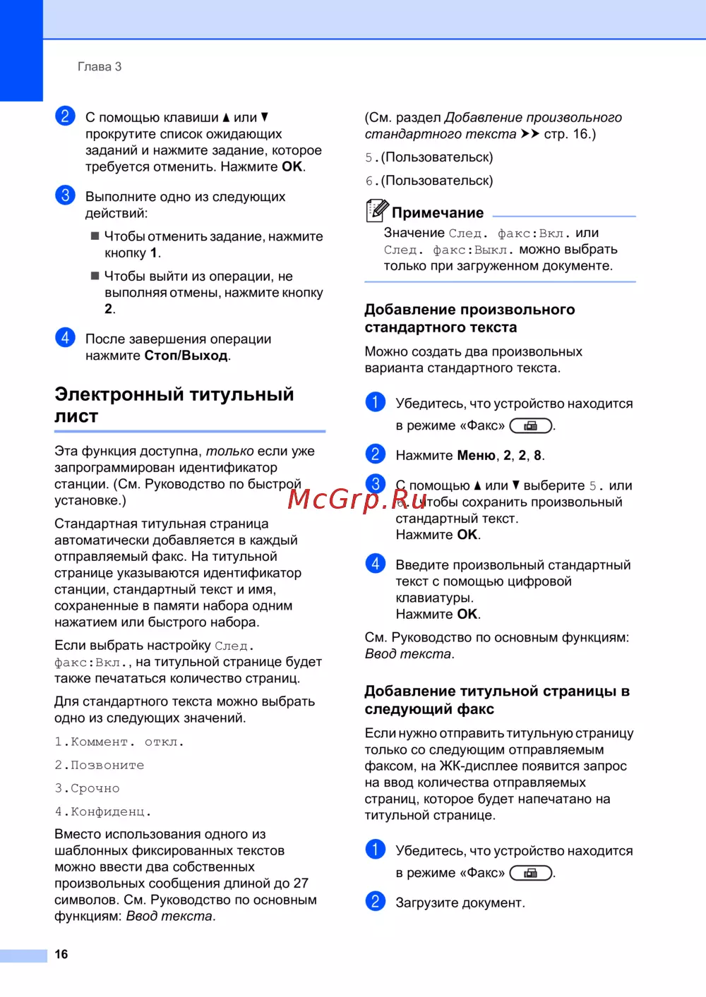 Узнайте, как отменить задание факса и настроить титульную страницу с произвольным текстом. Пошаговая инструкция для эффективного использования устройства.