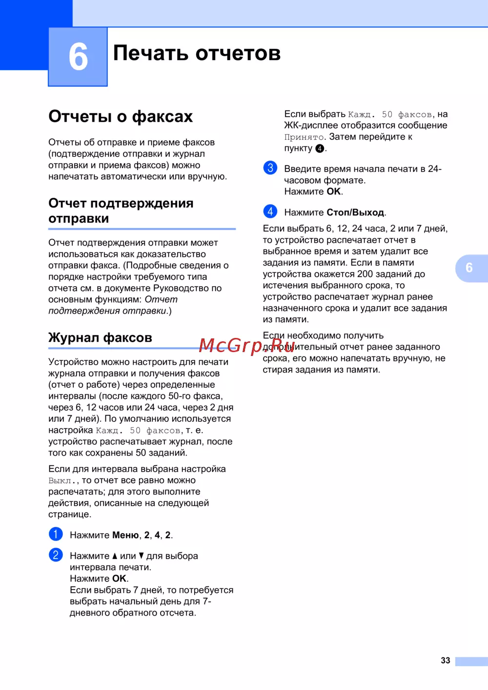 Узнайте, как настроить автоматическую и ручную печать отчетов о факсах, включая подтверждение отправки и журнал отправки. Подробные инструкции по настройке.