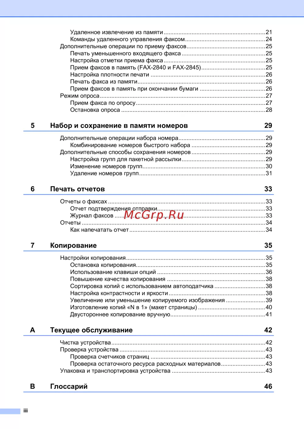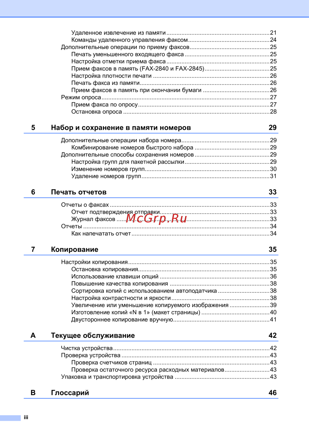 Прием факсов в память (FAX-2840 и FAX-2845).......................................25