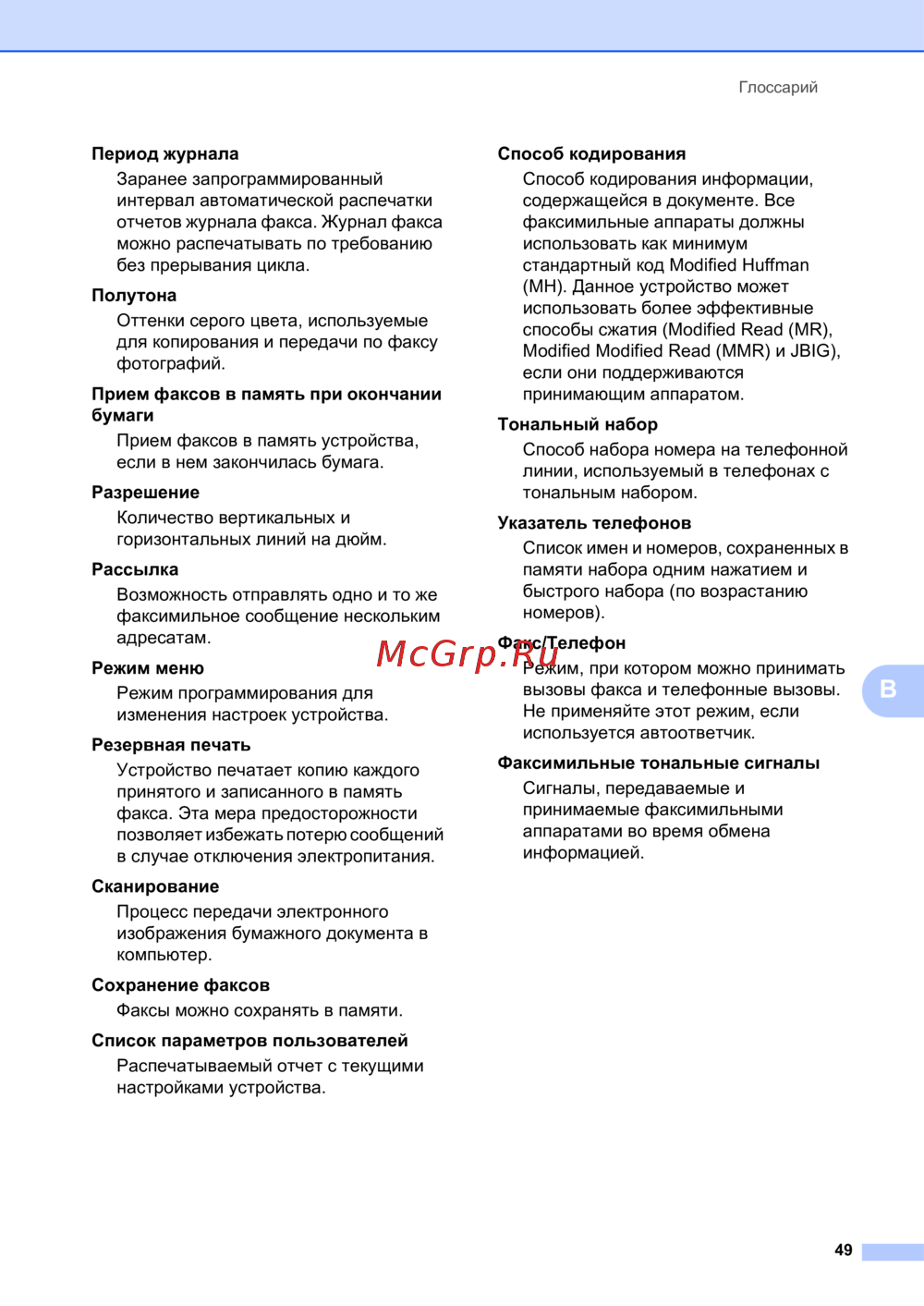 Brother FAX-2940R — глоссарий терминов факсимильной связи и печати [55/59]