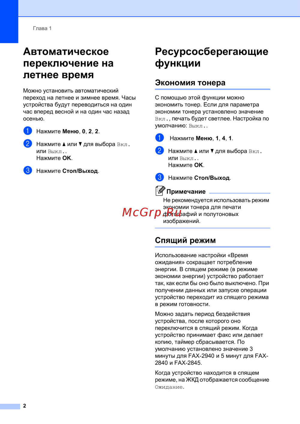 Brother FAX-2940R — настройка автоматического переключения на летнее время и экономия энергии [8/59]