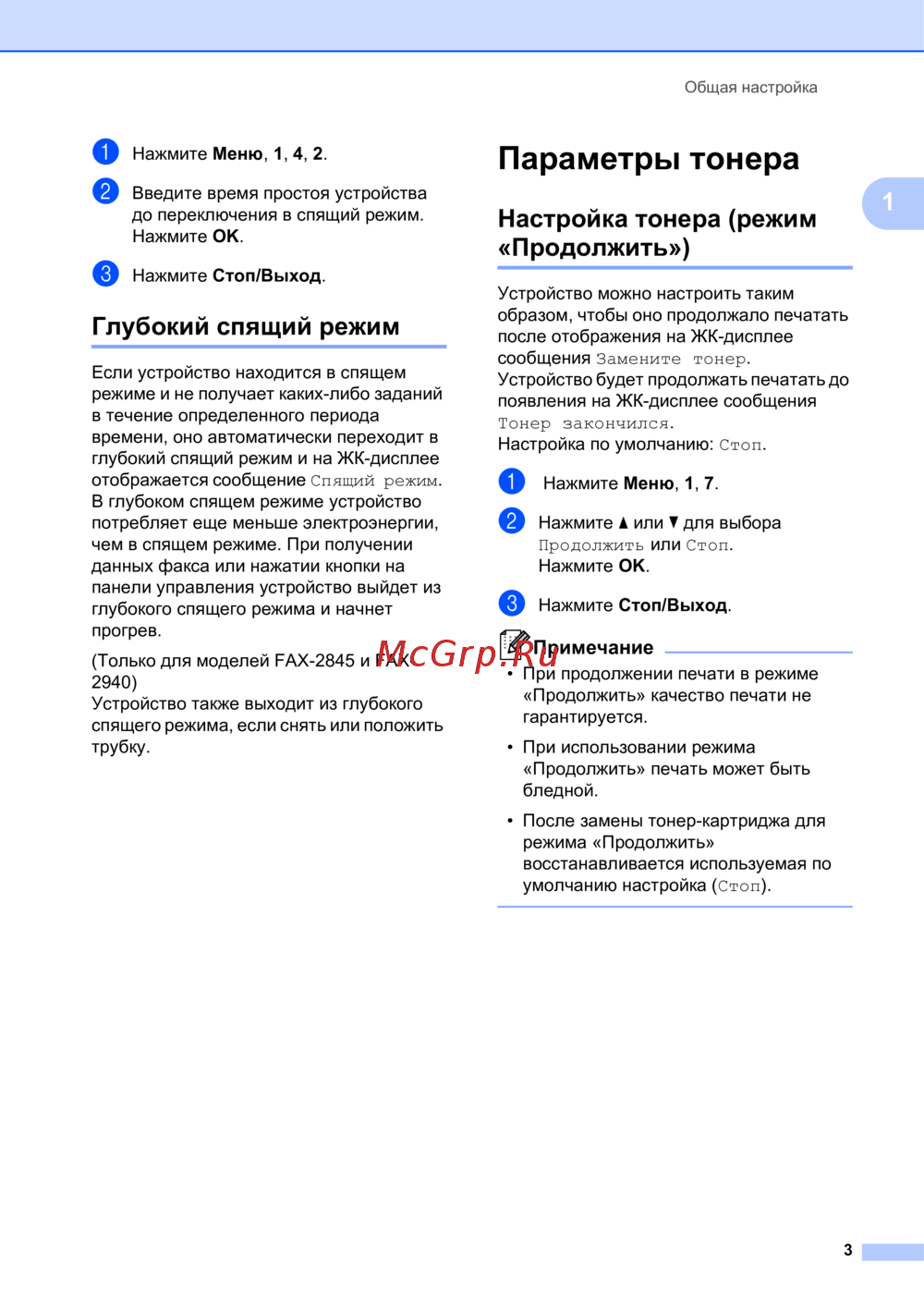 Brother FAX-2940R — настройка режима сна и тонера для устройств печати [9/59]