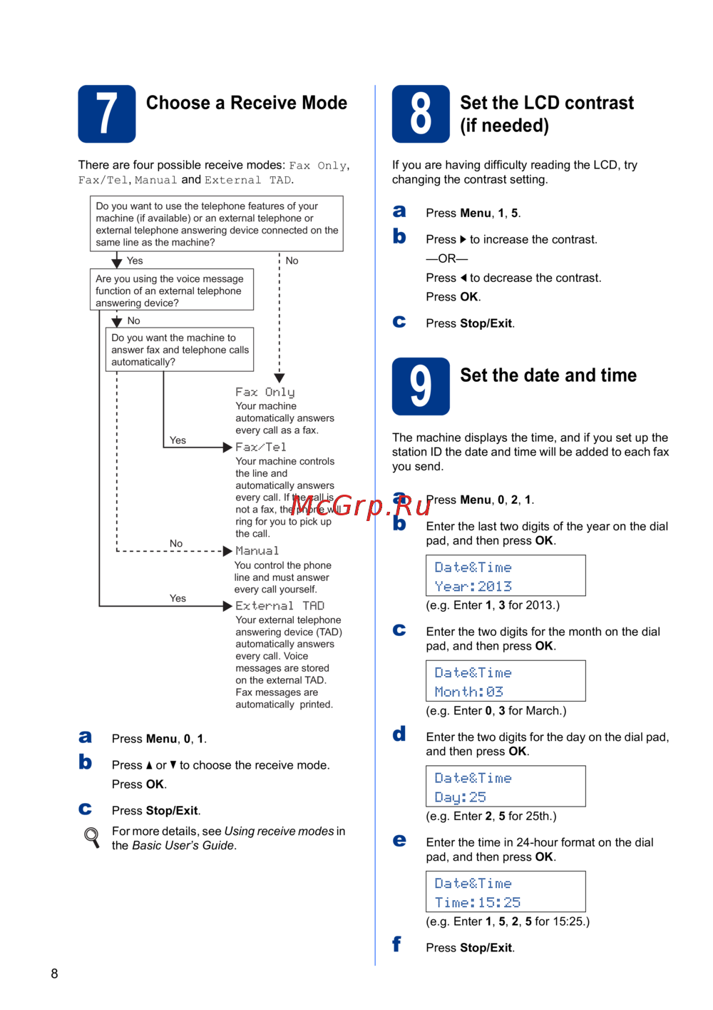 Brother FAX-2940R [8/13] Set the lcd contrast if needed
