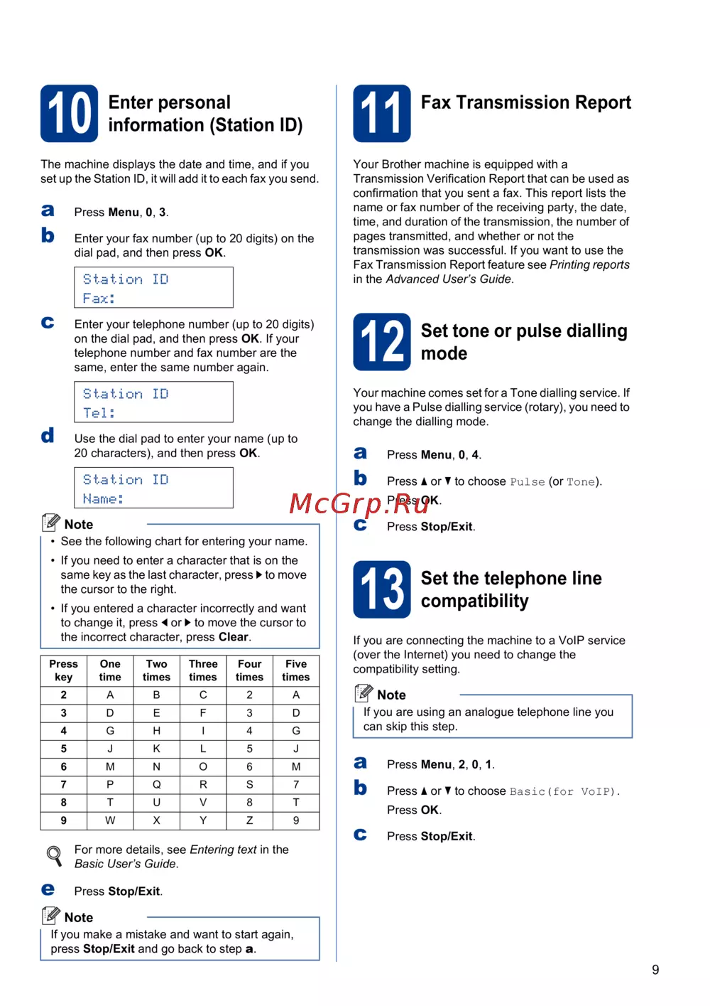 Brother FAX-2940R — как настроить идентификатор станции и отправку факсов [9/13]