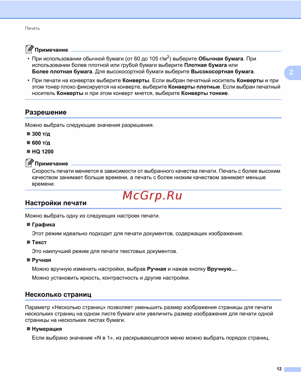 - Рекомендации для печати на обеих сторонах бумаги p.12