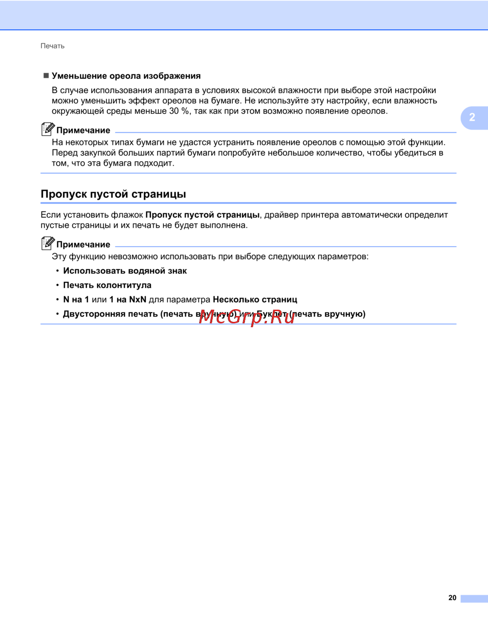 Узнайте, как уменьшить ореолы на бумаге при печати в условиях высокой влажности и как пропускать пустые страницы для оптимизации процесса печати.
