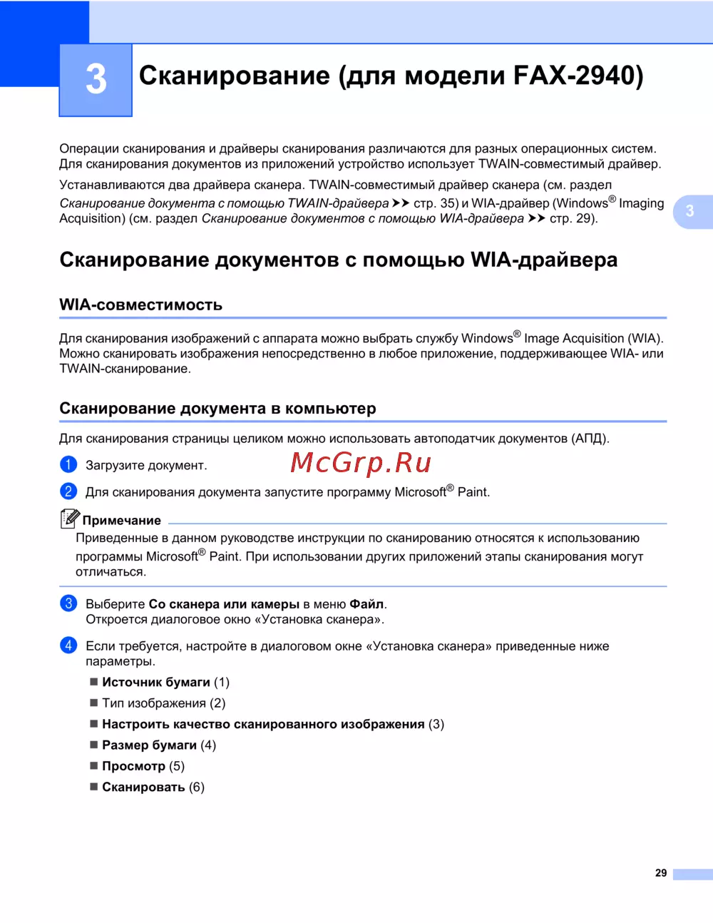 Brother FAX-2940R — как сканировать документы с помощью TWAIN и WIA драйверов [35/89]