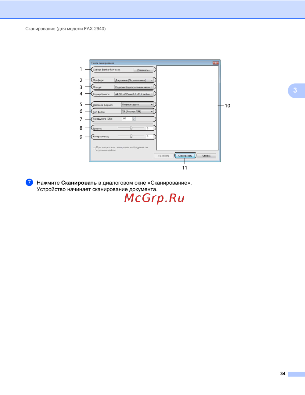 ![Brother FAX-2940R [40/89] Нажмите сканировать в диалоговом окне сканирование устройство начинает сканирование документа](/views2/1406000/page40/bg28.png)