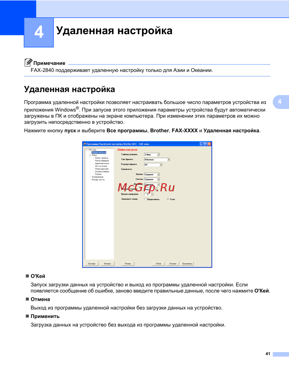 FAX-2840 поддерживает удаленную настройку только для Азии и Океании.