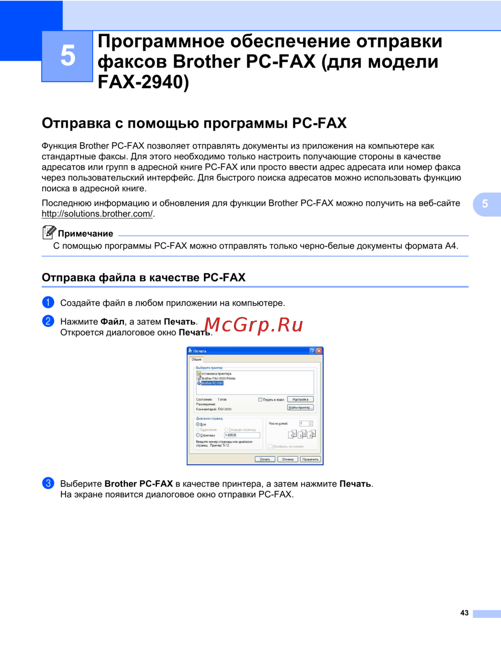 - Программное обеспечение отправки факсов brother pc fax для модели fax 2940 43 p.5