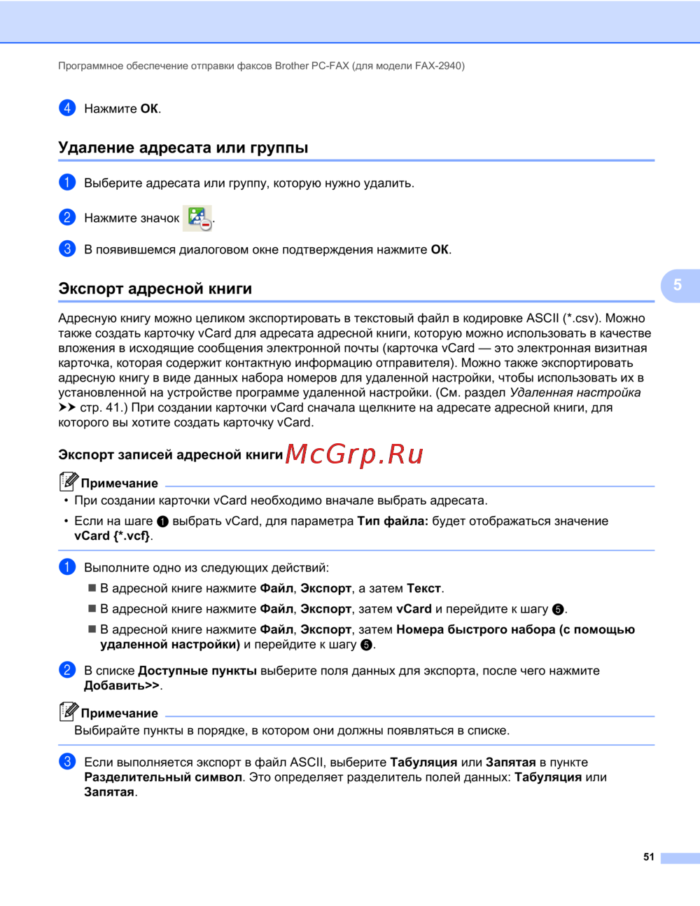 Brother FAX-2940R — инструкция по экспорту адресной книги и созданию vCard [57/89]