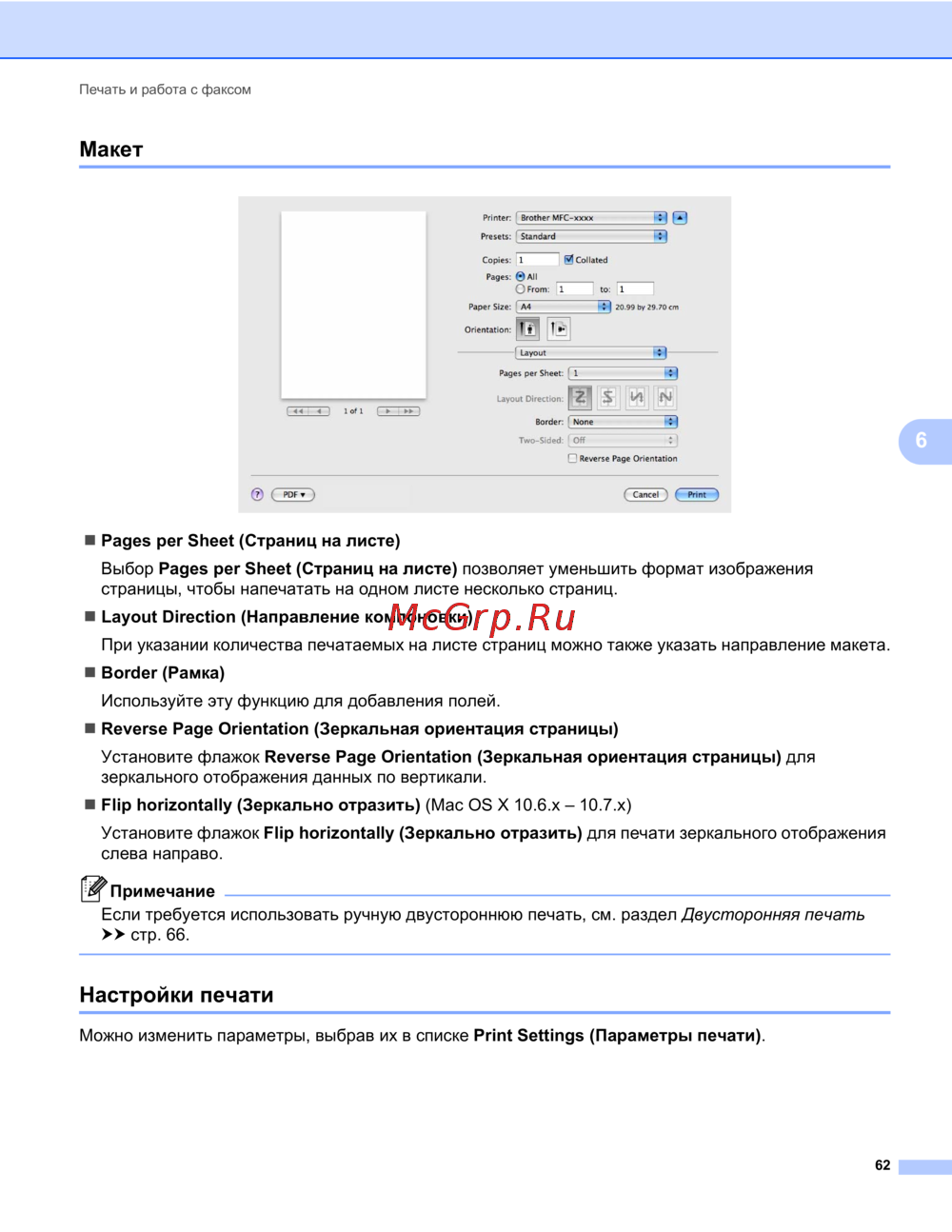 - Рекомендации для печати на обеих сторонах бумаги p.62