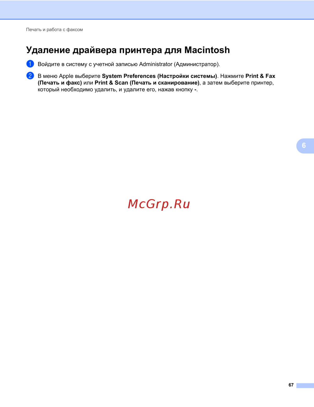 Brother FAX-2940R [73/89] Удаление драйвера принтера для macintosh