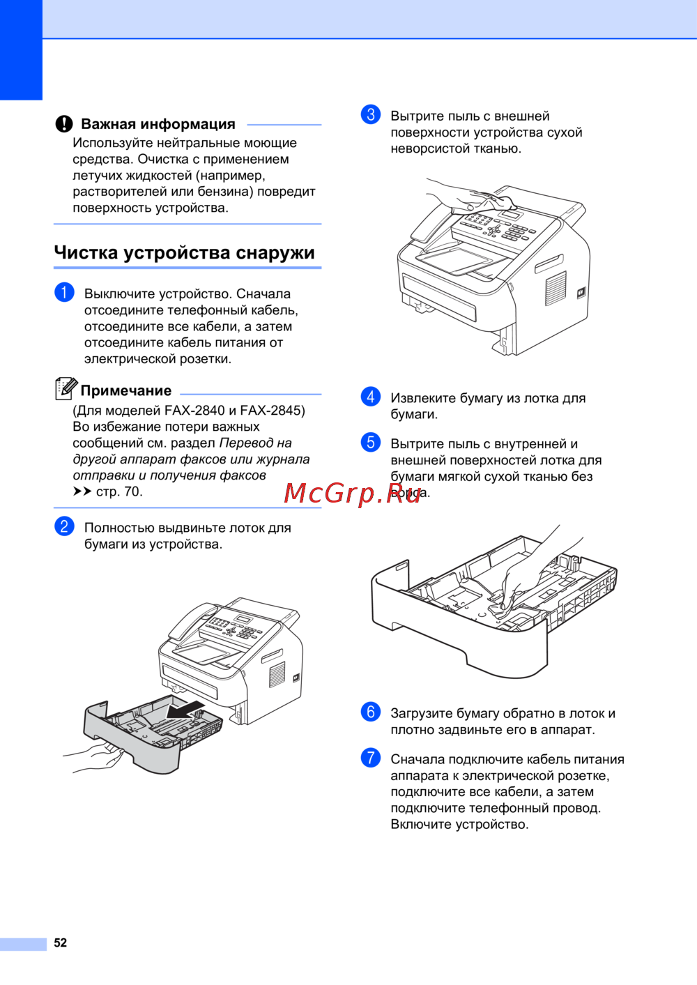 Brother FAX-2940R — как правильно чистить и обслуживать устройство для печати [60/127]