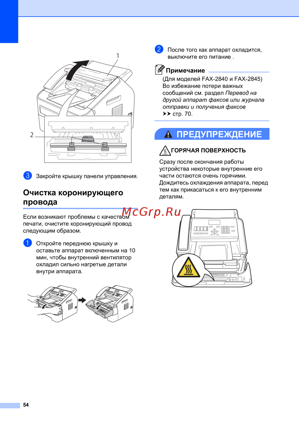 Brother FAX-2940R — инструкции по очистке коронирующего провода для печатающих устройств [62/127]