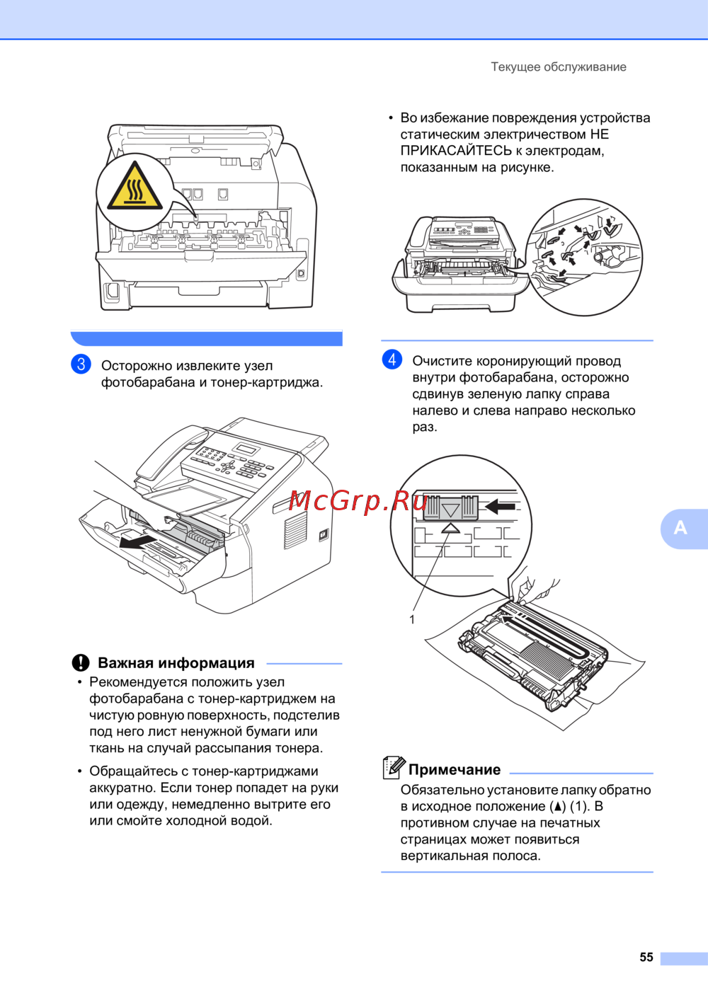 Brother FAX-2940R — инструкция по обслуживанию фотобарабана и тонер-картриджа: важные рекомендации [63/127]