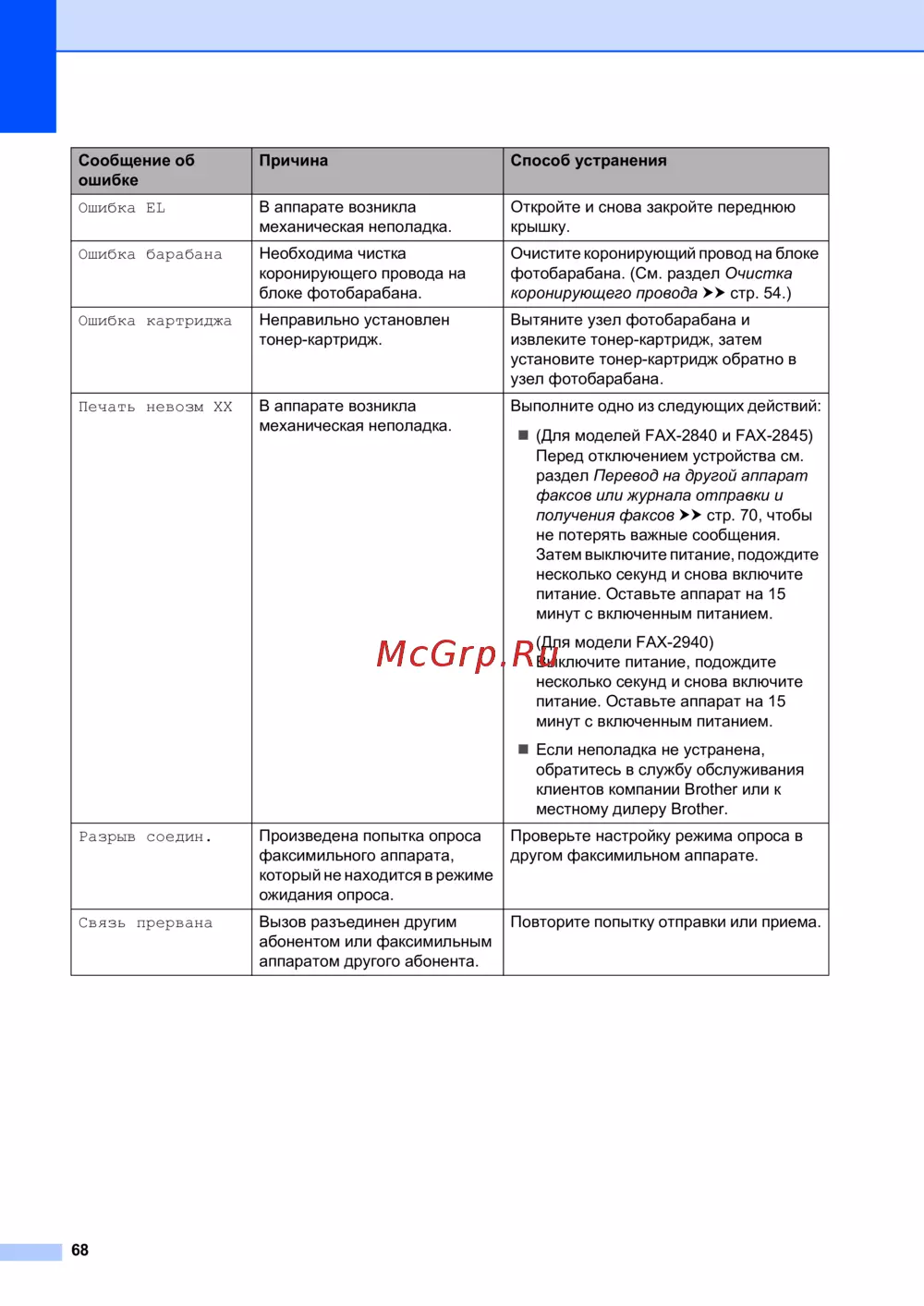Brother FAX-2940R — устранение ошибок факсимильного аппарата: советы и рекомендации [76/127]