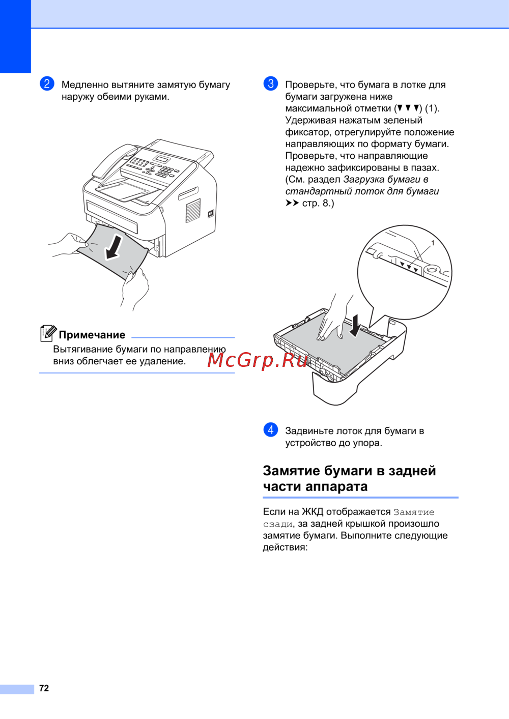 Brother FAX-2940R — как устранить замятие бумаги в печатающем устройстве [80/127]