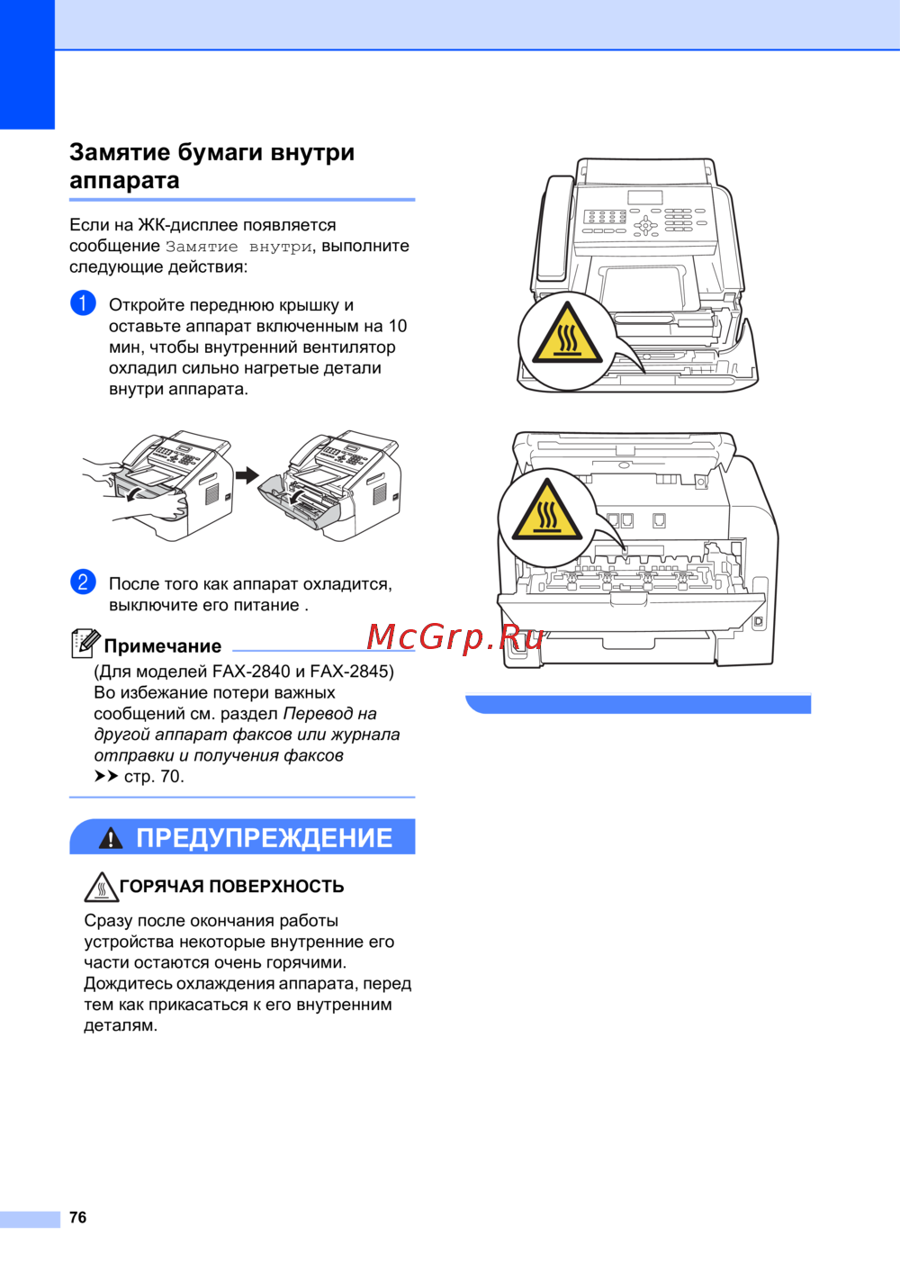 Brother FAX-2940R — как устранить замятие бумаги в аппарате: пошаговая инструкция [84/127]