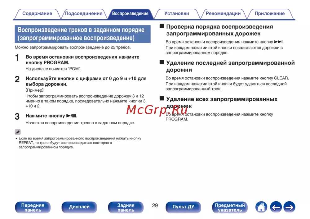 Узнайте, как запрограммировать воспроизведение до 25 треков, управлять порядком и повтором. Подробные инструкции и советы по настройке.