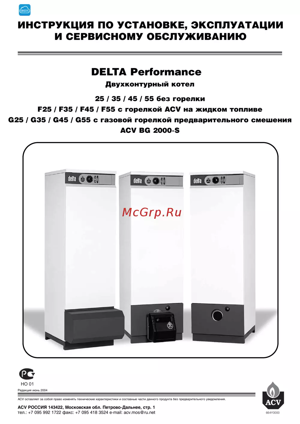 ACV Delta Performance G55 — инструкция по установке и обслуживанию двухконтурного котла [1/21]