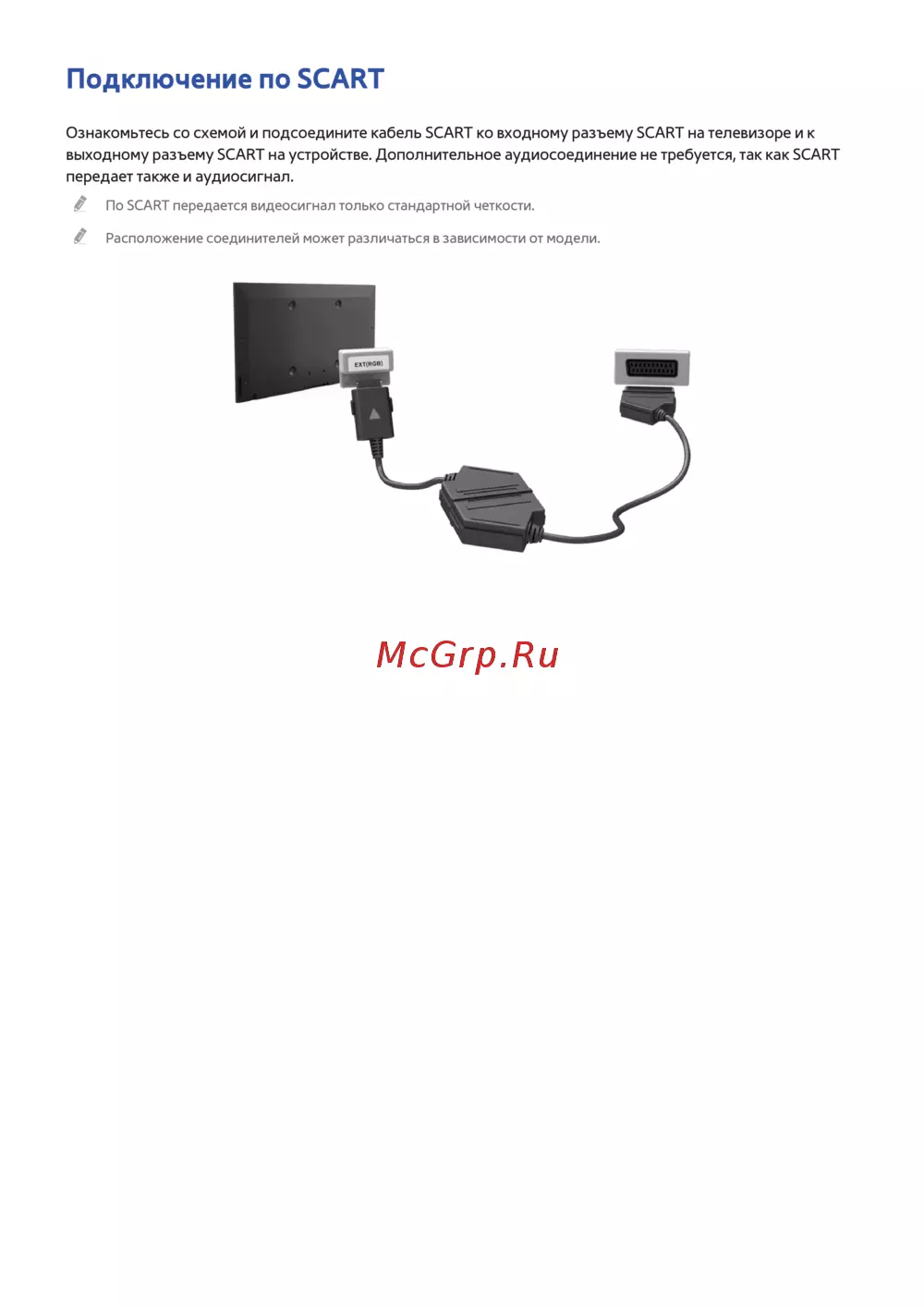 выходному разъему SCART на устройстве. Дополнительное аудиосоединение не требуется, так как SCART