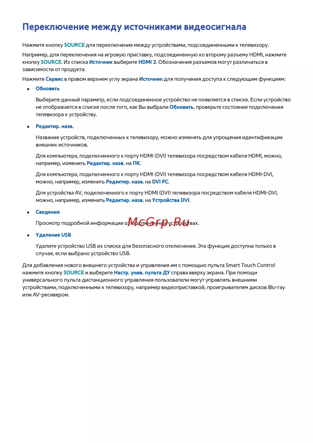 устройствами, подключенными к телевизору, например видеоприставкой, проигрывателем дисков Blu-ray