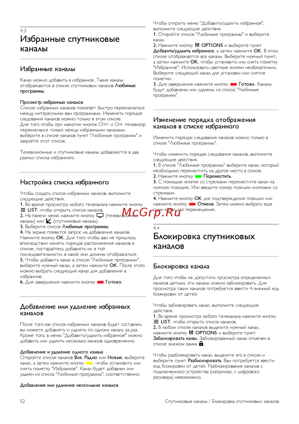 Philips 42PFL7108S — как настроить избранные спутниковые и телевизионные каналы [52/95]