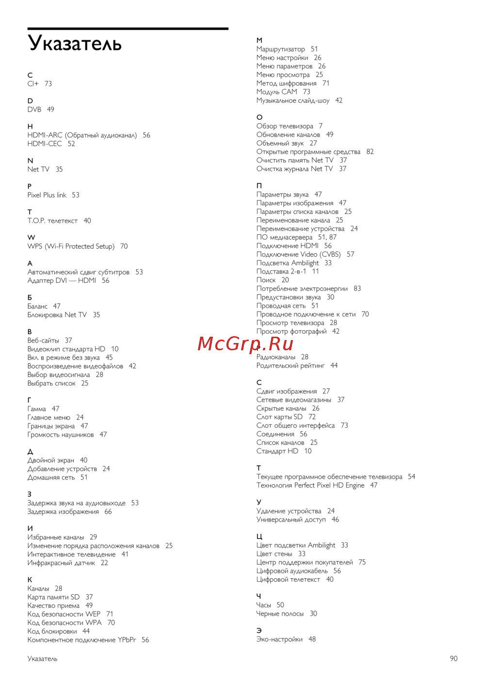 Philips 32 PFL8605H/12 [90/93] Указатель