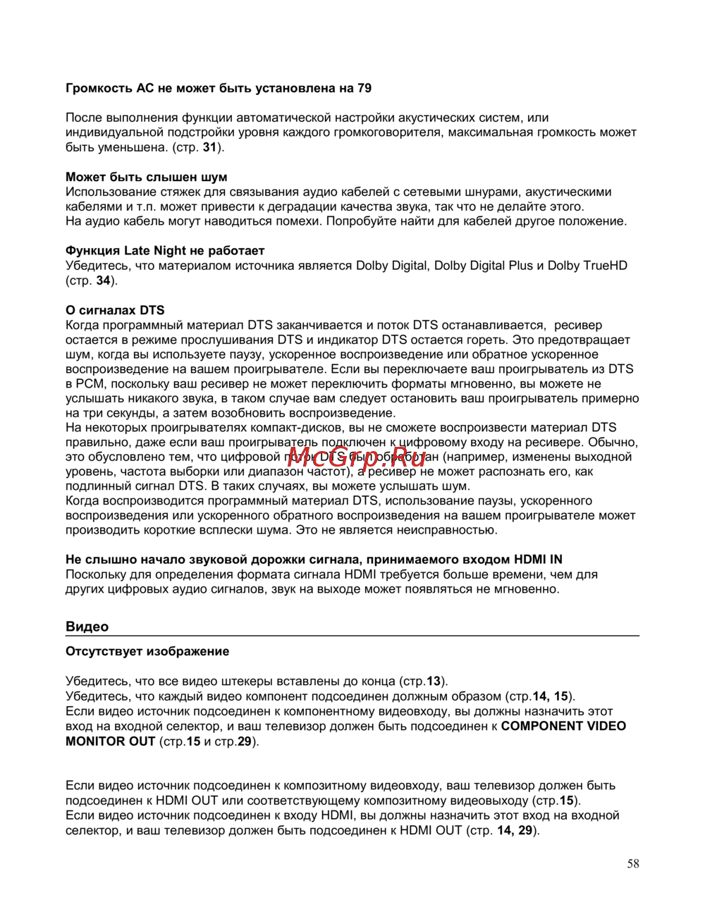 Onkyo TX-SR 308 Silver — проблемы с аудио и видео: советы по устранению неполадок [58/68]