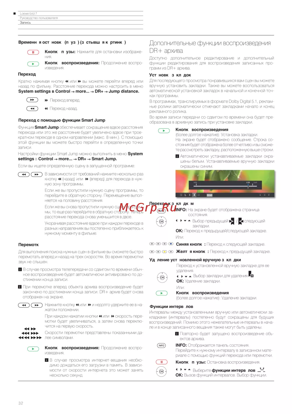 Узнайте, как использовать функции воспроизведения, паузы и перемотки в вашем устройстве. Настройте переходы и установите закладки для удобного просмотра.