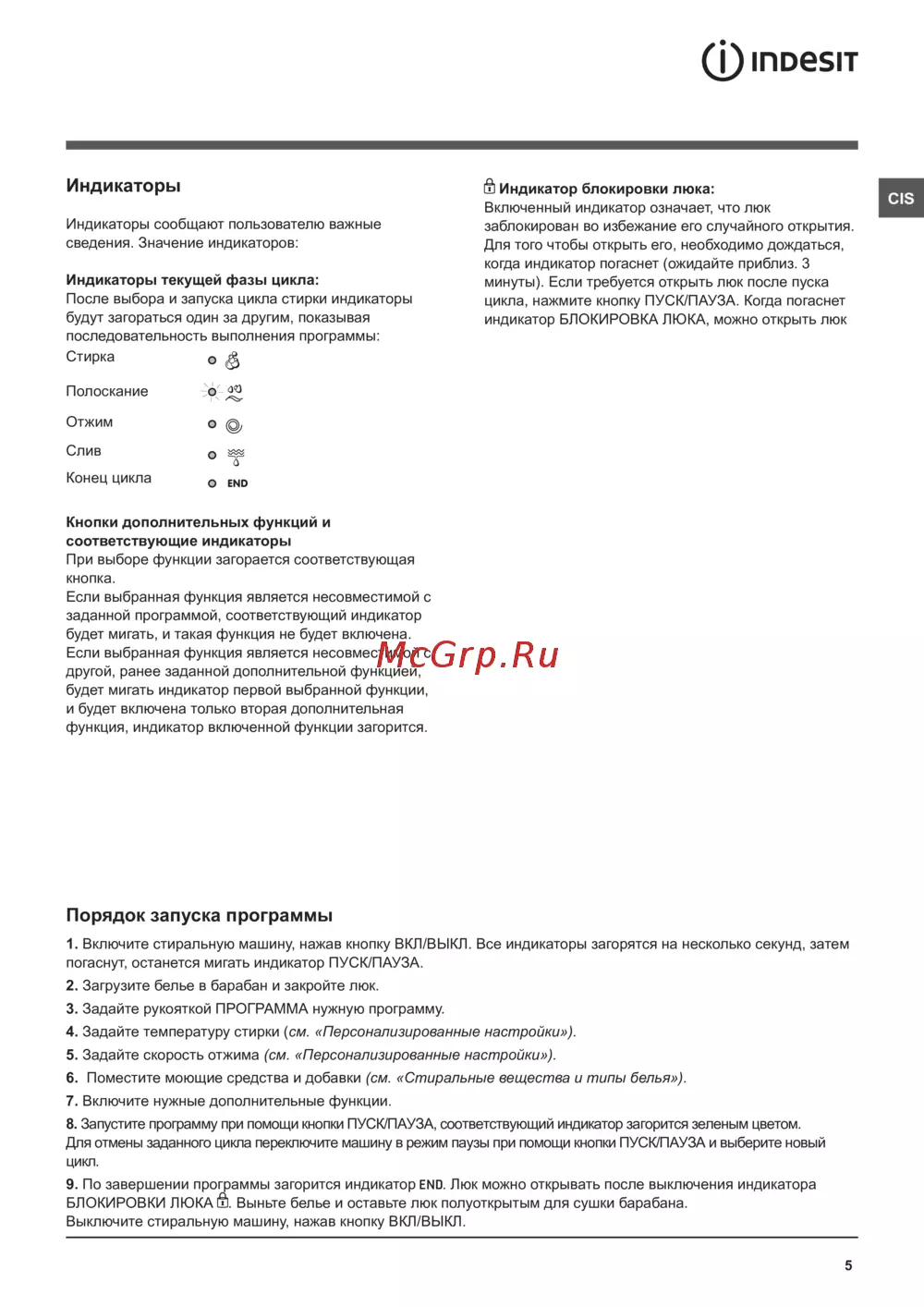 Indesit IWUD 4105 — инструкция по использованию индикаторов стиральной машины [5/12]