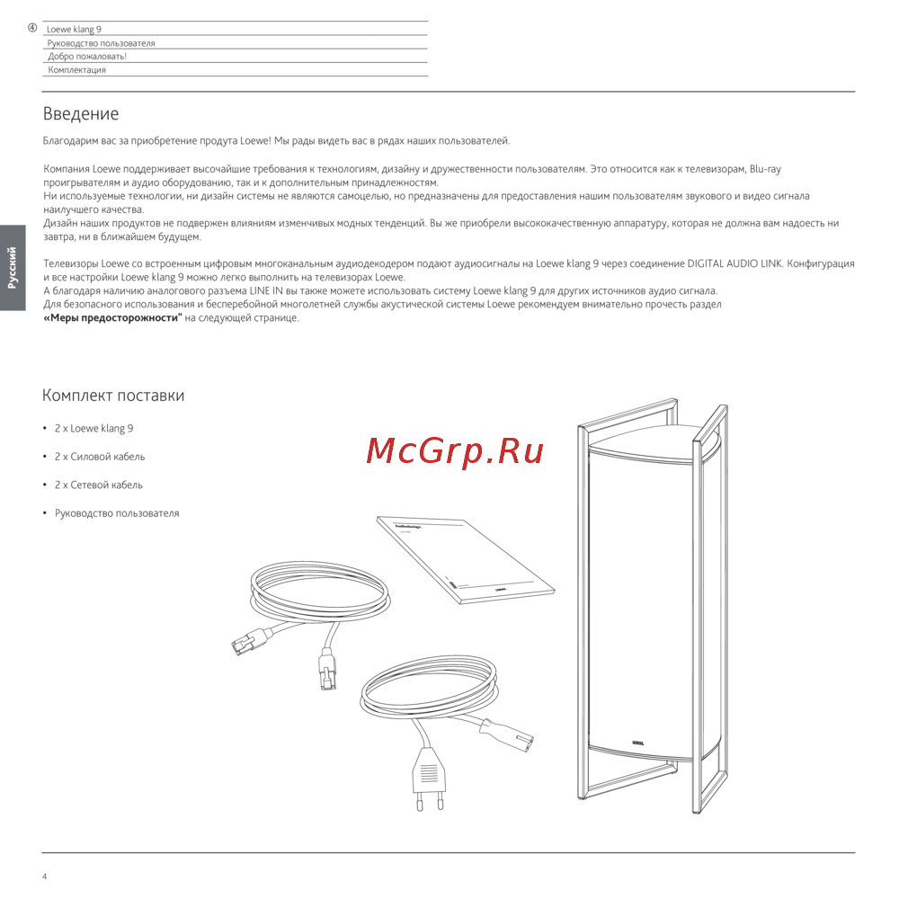 Для безопасного использования и бесперебойной многолетней службы акустической системы Loewe рекомендуем внимательно прочесть раздел