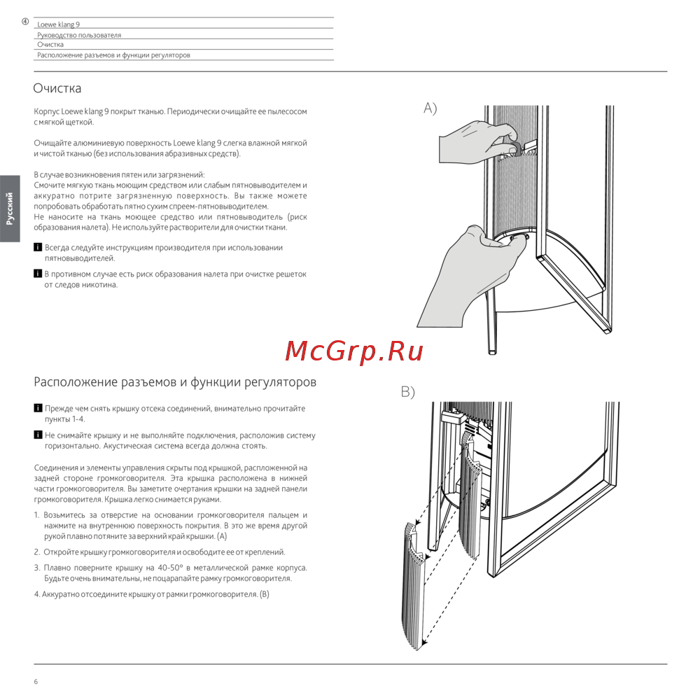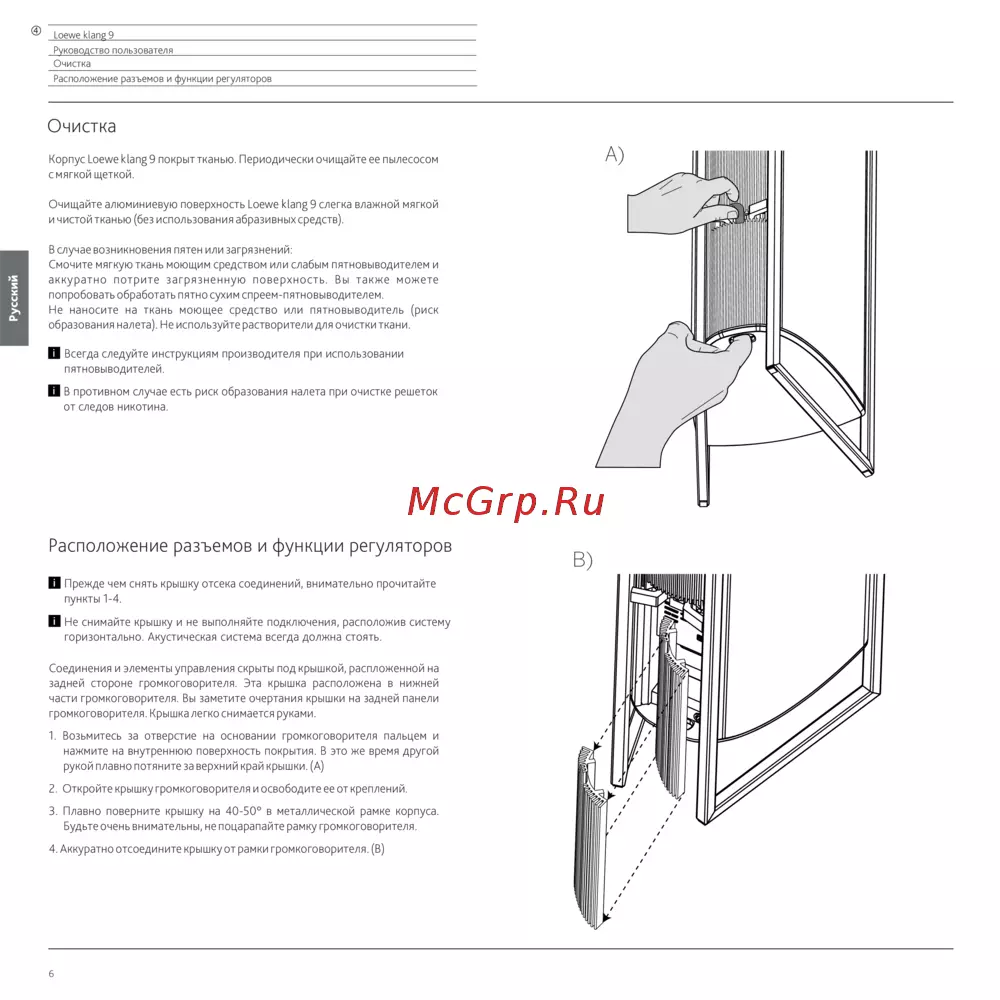 Loewe Klang 9 Amber Gold (57201A00) — инструкция по очистке и обслуживанию акустической системы [6/19]