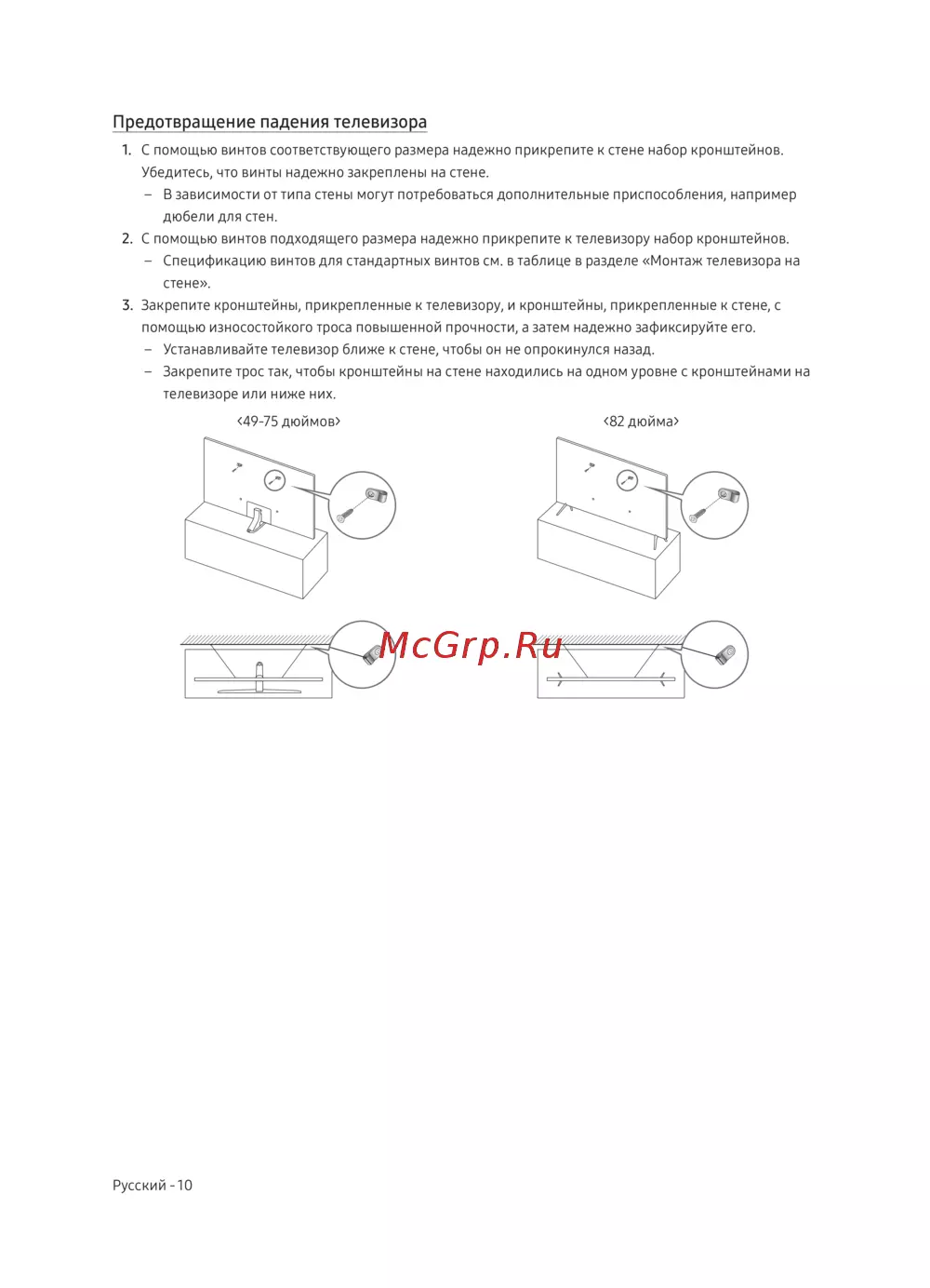 - Предотвращение падения телевизора p.10