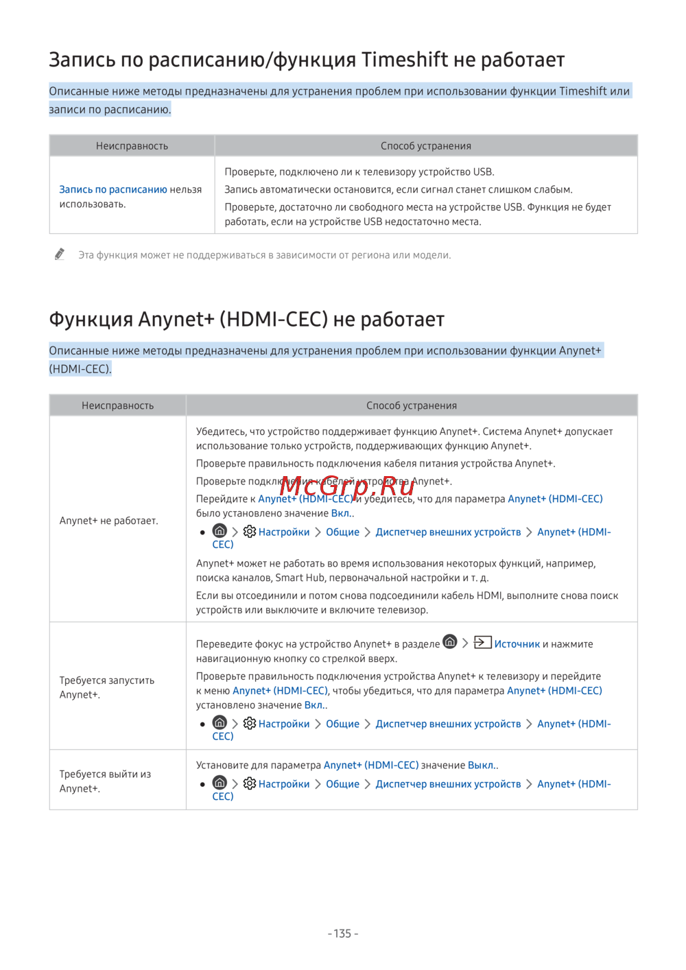 Samsung UE65NU7470U — устранение проблем с записью и Anynet+ на телевизоре [135/188]