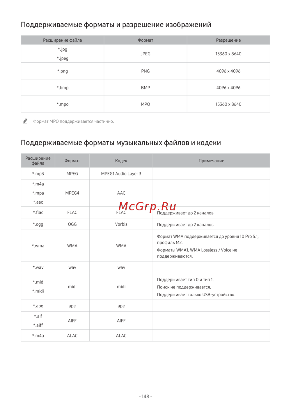 ![Samsung UE65NU7470U [148/188] Поддерживаемые форматы музыкальных файлов и кодеки](/views2/1411967/page148/bg94.png)